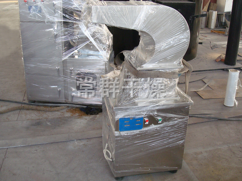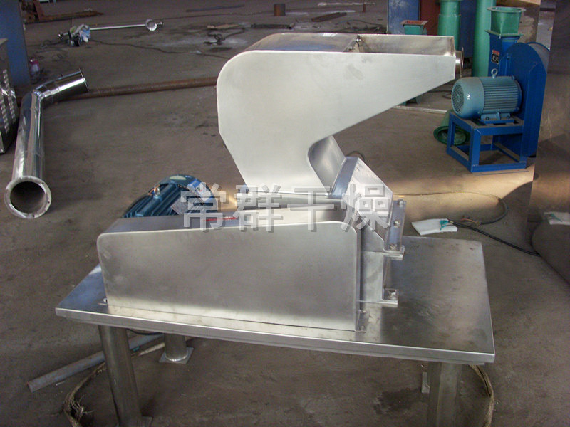 ??物料由進料斗送進粉碎室,經刀刃和刀座的沖擊,旋轉刀和固定刀同時剪切粉碎,由于受到旋轉離心力的作用,物料自動從出口處流出。