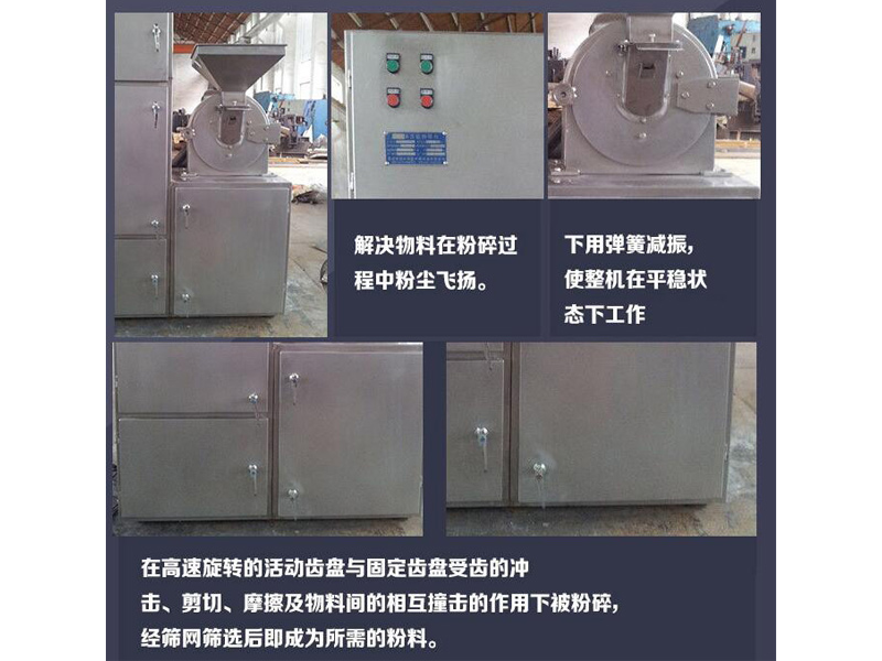本機結構簡單﹑堅固﹑運轉平穩﹑粉碎效果良好,被粉碎物可直接由主機磨腔中排出,粒度大小通過更換不同孔徑網篩獲得。