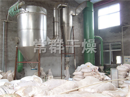 ??經(jīng)換熱器加熱后的潔凈空氣被鼓入進(jìn)風(fēng)口,以適合的速度旋入干燥室底部的環(huán)隙,然后按切線方向進(jìn)入干燥室,并呈螺旋狀上升:一同,物料則由可無級(jí)調(diào)速的加料器定量加入塔內(nèi)。在干燥塔內(nèi),物料與熱空氣進(jìn)行充分、高效的質(zhì)熱改換,被干燥的粉狀物料伴隨熱風(fēng)一同輸送至分離器,其中成品收集包裝,而尾氣則進(jìn)一步經(jīng)除塵設(shè)備處理后排空。